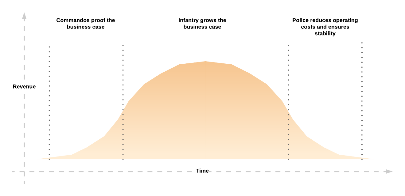 The teams that are focussed on innovation (example A) have a entirely different approach than the foundation teams that are about maintaining the current landscape (example B).