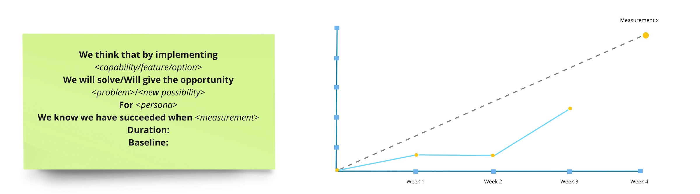 The way to guarantee we also follow the carefully created objective driven approach in the execution is by making assumptions and making sure we validate whether they are right. A way to do this is by using the following format for epic, features and user stories: